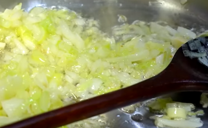 2. 팬에 기름을 충분히 두르고, 양파와 파를 볶아 야채 기름을 내줍니다.