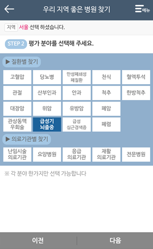 3. 질환별 선택하여 다음 클릭