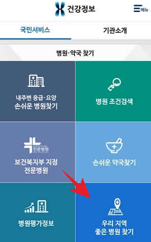 1. 사이트 첫화면에서 우리지역 좋은 병원 찾기 클릭