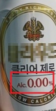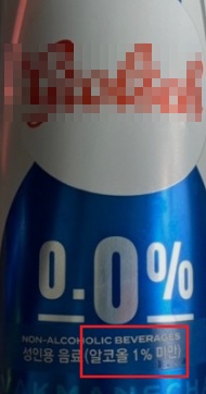해당 사진과 같이 알코올 0.00%라고 되어 있는건 실제로 알콜이 들어가 있지 않은 맥주입니다.