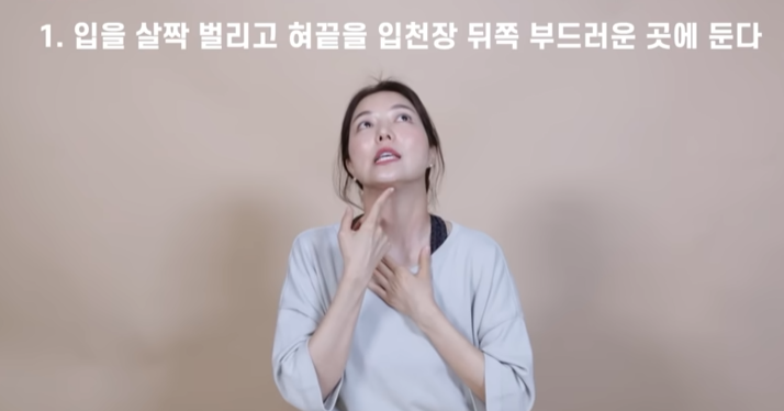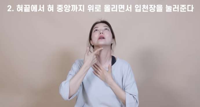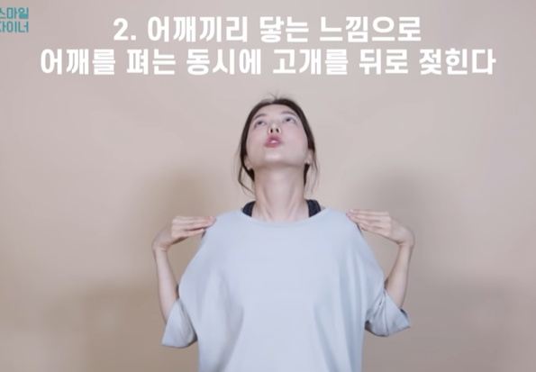 턱 아래 근육은 나이가 들면서 힘이 빠져 지방이 조금씩 새어나오기 시작한다. 이 운동은 아래턱이 바로 위로 붙는 느낌을 받을 수 있다.
