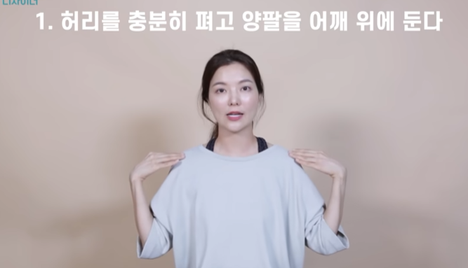 이때 뒷목이 많이 당길 경우에는 무리하게 꺽지말고 자연스럽게 자극이 갈 정도만 제쳐주면 된다. 이 운동은 거북목이 심한 사람들에게 특히나 도움이 되는 운동이다.