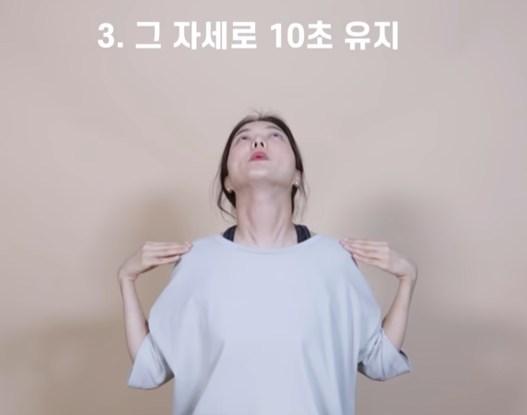 이렇게 턱 끝이 눌러지면서 달라붙어있는 상태로 10초간 버틴다. 해당 운동은 평소에도 생각날때마다 해주면 좋은 효과를 준다.